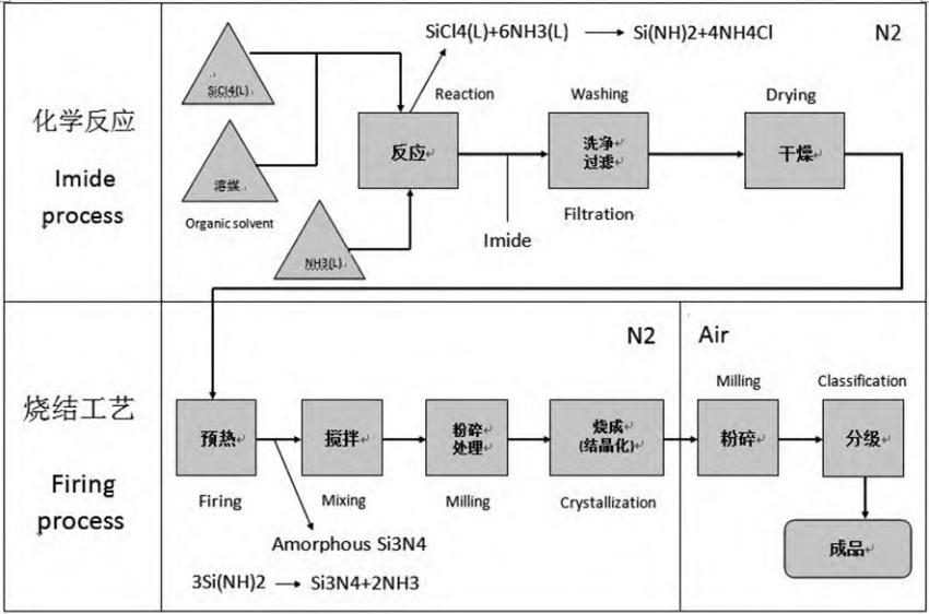硅亞胺熱解法的生產(chǎn)工藝流程圖
