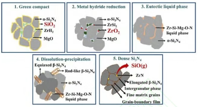 燒結(jié)助劑ZrH2在Si3N4陶瓷燒結(jié)中的作用機(jī)理示意圖
