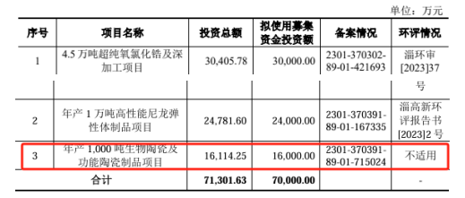 本項目實施主體為長裕控股集團股份有限公司全資子公司廣垠新材料,建設地點位于山東省淄博市高新區民祥路49號,預計投資總額為16114.25萬元。本項目將在廣垠新材料廠區建設,無新增土地。項目設計新增氧化鋯陶瓷制品年產約1000噸的生產能力,項目完成后公司無機產業鏈將得到進一步延伸。年產1000噸生物陶瓷及功能陶瓷制品項目已取得《山東省投資項目備案證明》,項目代碼2301-370391-89-01-715024。項目計劃總投資16114.25萬元。