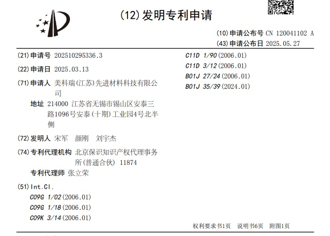 中國粉體網訊 近日,據國家知識產權局信息顯示,美科瑞(江蘇)先進材料科技有限公司申請一項名為“一種具備自清潔能力納米氧化鋁拋光液及其制備方法”的專利,公開號CN120041102A。