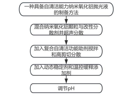 為解決以上問題,美科瑞提供一種具備自清潔能力的納米氧化鋁拋光液及其制備方法,該拋光液包括納米氧化鋁顆粒80-100份、去離子水450-500份、復合自清潔功能助劑10-15份、改性分散劑4-6份、動態穩定劑3-5份、溫控緩釋添加劑2-4份、pH調節劑1-2份。制備步驟包括:將所述納米氧化鋁顆粒與改性分散劑在去離子水中混合,超聲分散10-20分鐘;加入復合自清潔功能助劑,攪拌均勻后進行高剪切分散20-30分鐘;加入動態穩定劑和溫控緩釋添加劑,低速攪拌15-20分鐘;調節pH至中性6.5-7.5,通過300目濾網過濾后裝瓶備用。