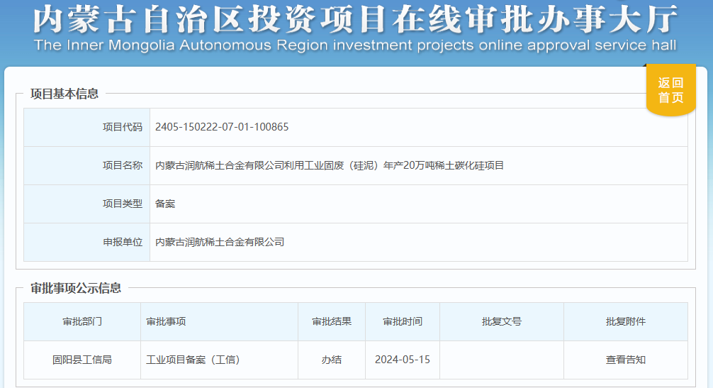 信息來源:內蒙古自治區投資項目在線審批辦事大廳
