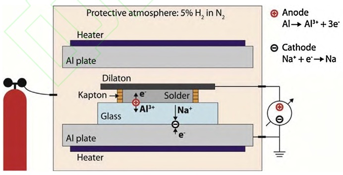 活化液體錫焊料陽(yáng)極鍵合工藝示意圖 來(lái)源:Wim.Optimized solder alloy for glass-to-metal joints by simultaneous soldering and anodic bonding