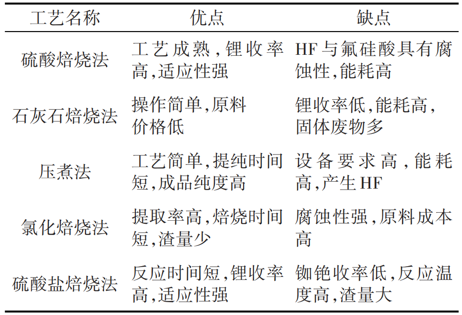 各鋰云母提鋰工藝的對比