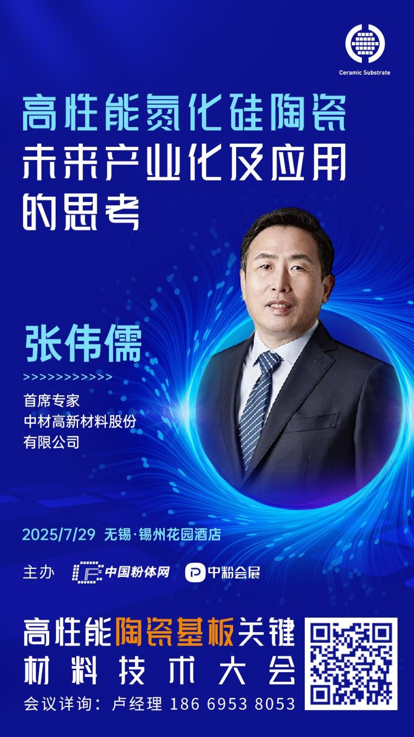 半導(dǎo)體及電子信息產(chǎn)業(yè)的快速發(fā)展對核心材料的性能提出了更高要求。陶瓷基板作為功率半導(dǎo)體器件的關(guān)鍵封裝材料,其導(dǎo)熱性能、機(jī)械強(qiáng)度、可靠性和精密程度直接決定了終端產(chǎn)品的性能與壽命。針對材料研發(fā)、制備工藝、檢測技術(shù)、應(yīng)用場景等核心議題,中國粉體網(wǎng)將于2025年7月29日在江蘇無錫舉辦2025高性能陶瓷基板關(guān)鍵材料技術(shù)大會(huì)。屆時(shí),中材高新材料股份有限公司首席專家張偉儒將作題為《高性能氮化硅陶瓷未來產(chǎn)業(yè)化及應(yīng)用的思考》的報(bào)告,報(bào)告中將介紹氮化硅陶瓷國內(nèi)外研究、產(chǎn)業(yè)化及應(yīng)用進(jìn)展,重點(diǎn)從高性能氮化硅陶瓷的粉體和合成、產(chǎn)業(yè)化技術(shù)、精密冷加工、可靠性評價(jià)等方面進(jìn)行分析,提出未來值得關(guān)注的先進(jìn)制備技術(shù)和重點(diǎn)產(chǎn)品。