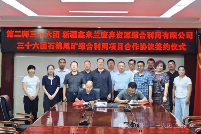 2025年6月18日,三十六團與新疆鑫米蘭廢棄資源綜合利用有限公司舉行了石棉尾礦綜合利用項目簽約儀式。此次簽約的石棉尾礦綜合利用項目計劃總投資達12億元,項目將分兩期同步進行,第一期安裝三條生產(chǎn)線;第二期在三十六團米蘭產(chǎn)業(yè)園區(qū)內(nèi)新建鎂、鋁冶煉項目。