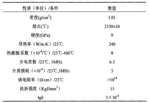 BeO陶瓷材料的典型性能