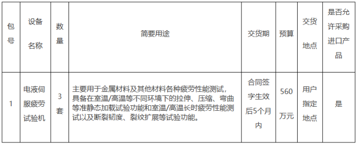 項目名稱:中國科學(xué)院金屬研究所電液伺服疲勞試驗機(jī)采購項目