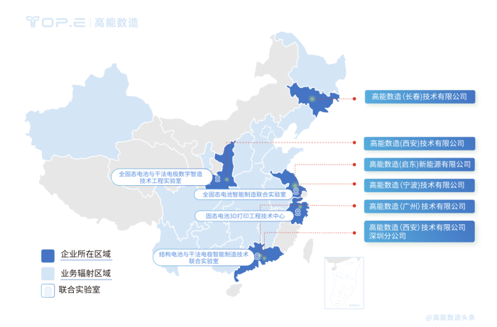 自 2021 年成立起,高能數(shù)造以 “研發(fā) + 產(chǎn)業(yè)化” 雙線并行戰(zhàn)略,構(gòu)建全國協(xié)同網(wǎng)絡(luò):西安為核心研發(fā)策源地,持續(xù)輸出前沿技術(shù);長春、寧波、啟東分別在服務(wù)主機(jī)廠、新材料驗證、設(shè)備制造環(huán)節(jié)筑牢產(chǎn)業(yè)支撐,形成覆蓋研發(fā)、生產(chǎn)、制造的全鏈條能力。2025年9 月,廣州第二總部建成與首條干法電極中試線落地,成為高能數(shù)造發(fā)展的雙里程碑。