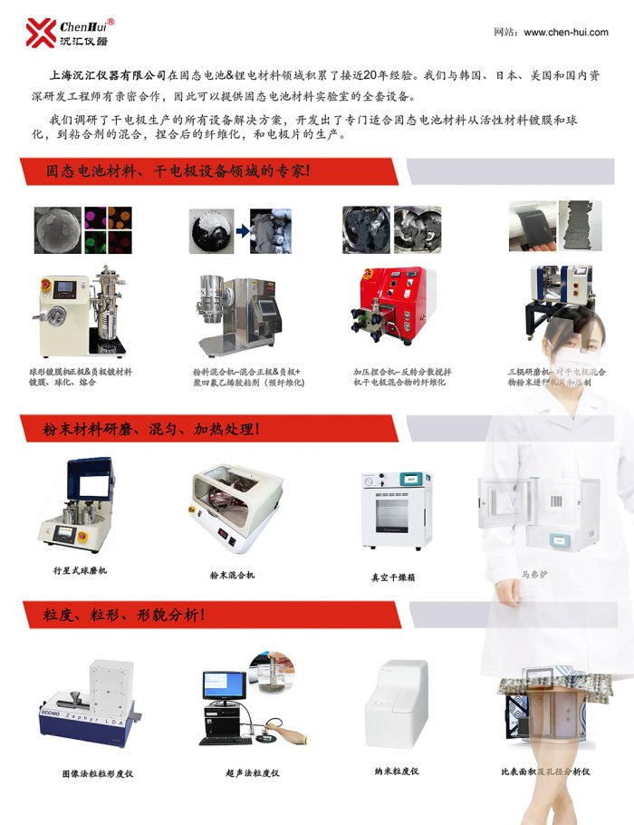 上海沉匯儀器有限公司在固態(tài)電池&鋰電材料領(lǐng)域積累了接近20年經(jīng)驗。我們與韓國、日本、美國和國內(nèi)資深研發(fā)工程師有親密合作,因此可以提供固態(tài)電池材料實驗室的全套設(shè)備。