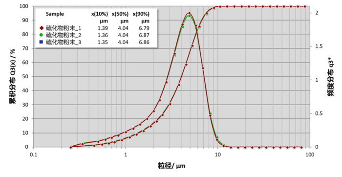固態電解質硫化物粉末3次干法測試粒度分布