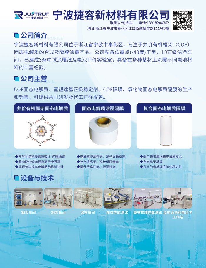 第七屆高比能固態電池關鍵材料技術大會將于2025年9月23-24日在蘇州舉辦,寧波捷容新材料有限公司邀請您共同出席。