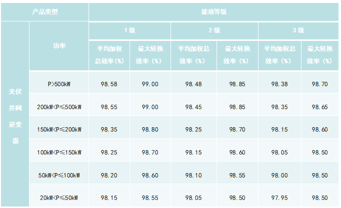 逆變器:分功率段定標準:500kW以上集中式逆變器1級平均加權總效率≥98.58%,20-50kW組串式逆變器1級效率≥98.15%,精準覆蓋不同應用場景,確保發電全鏈路能效最優。