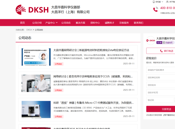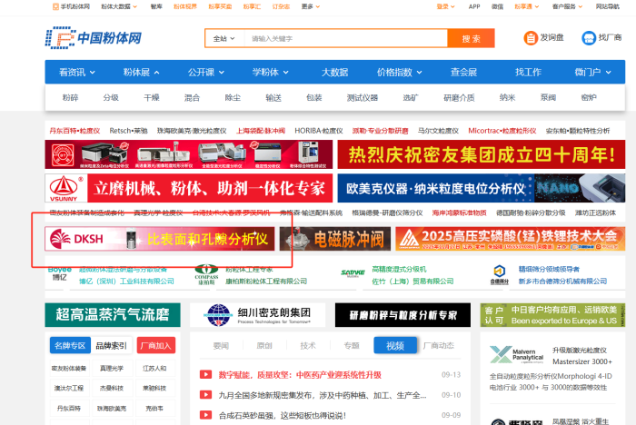針對大昌華嘉的產品線特點,粉享通制定了精準的展示策略:在粉體網首頁動態廣告位、科學儀器專區等重點位置重點呈現其核心產品,為用戶打造 “一觸即達” 的品牌信息獲取體驗。這種多觸點的布局方式,一方面加速了用戶與品牌之間的連接進程,另一方面通過廣告位投放、專題推薦等多渠道協同引流,成功吸引更多潛在客戶發起咨詢,使產品詢盤量得到明顯提升。
