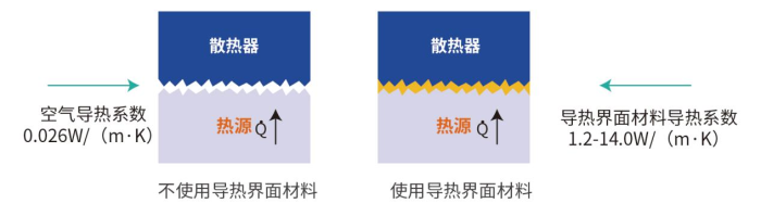 由于電子器件的表面往往高低不平,電子器件與散熱元件之間一般存在空隙。空氣是熱的不良導體(熱導率為0.025W/(m·K)),其存在會極大的降低散熱效率。為了解決這一問題,需要在界面處填充具有較高熱導率的界面導熱材料,以降低接觸熱阻。隨著集成電路的小型化和微型化,電子設備廠家對高效的導熱散熱材料的需求愈發(fā)強烈。