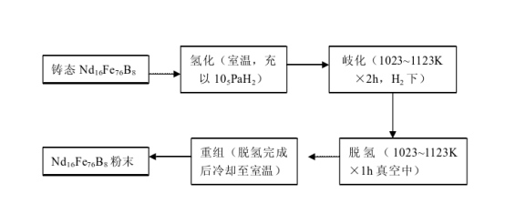 磁粉制備:采用HDDR(氫化-歧化-脫氫-再結(jié)合)法、機(jī)械破碎法或快淬法等制備磁粉。HDDR法是目前主流工藝,通過(guò)氫化-歧化-脫氫-再結(jié)合過(guò)程制備出平均粒徑約為0.3μm的高矯頑力磁粉。