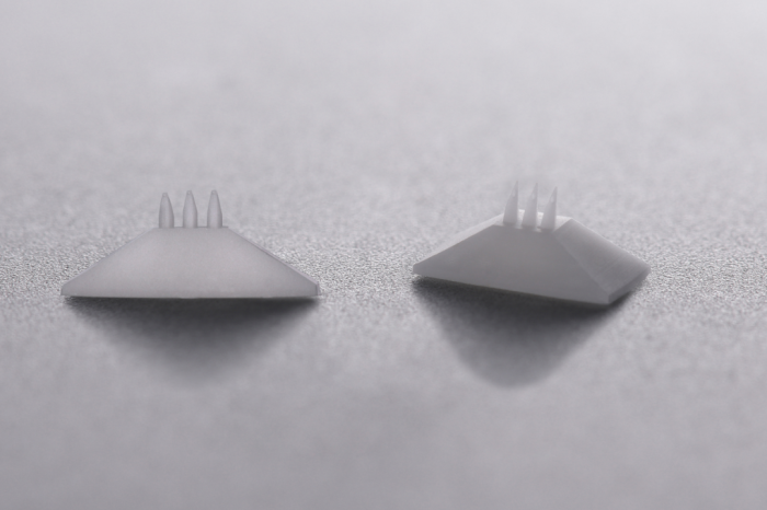陶瓷空心微針:采用氧化鋁和氧化鋯等高強度陶瓷材料,針尖僅3微米,陶瓷材料的高強度特性使其可反復穿刺100次以上,無斷針、彎針風險,確保使用穩定可靠。支持無痛經皮給藥,提高藥物利用率,部分藥物利用率從10%提升至90%,為藥物注射提供了更高效的選擇。應用于醫美(玻尿酸、膠原蛋白注射)及藥物遞送(胰島素、疫苗)。