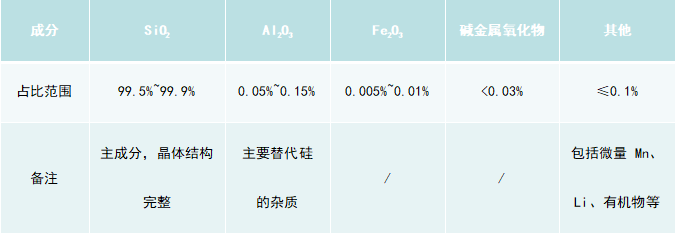 據了解,超白玻璃是以低鐵石英砂為主要原料制備的一種低鐵、高透明度的硅酸鹽玻璃。光伏行業是超白玻璃的主要應用領域。而低鐵石英砂是超白玻璃生產最主要的原料,它在超白玻璃原料中的占比一般在60%以上。原料中的鐵含量對超白玻璃透光率的影響最大,其次是鈦,因為較高的鐵含量會使得超白玻璃發綠,而較高的鈦含量會使得超白玻璃發黃,二者都會降低可見光透過率。因此,必須采用低鐵石英砂才能滿足超白玻璃質量要求。