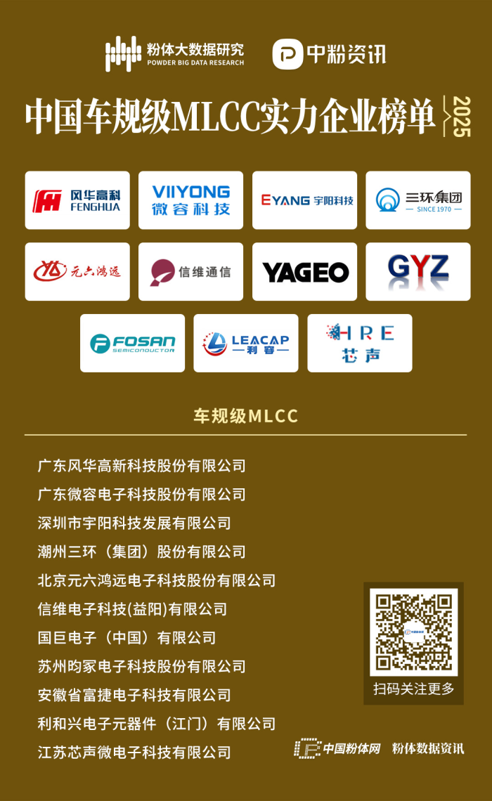 廣東風華高新科技股份有限公司(000636)成立于1984年,是一家專業從事高端新型元器件、電子材料等電子信息基礎產品的高新技術企業,1996年在深圳證券交易所掛牌上市。風華高科自1985年率先引進國內首條MLCC生產線以來,始終專注于MLCC及相關材料的研發與制造。歷經40年發展,公司已實現01005-2225及以上全尺寸MLCC產品覆蓋,并通過IATF16949、AEC-Q200等車規體系認證,擁有MLCC核心專利200余項,MLCC產品于2024年3月獲評“國家制造業單項冠軍產品”。