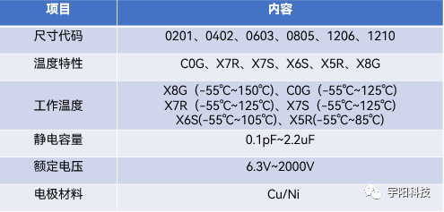宇陽科技車規級MLCC產品規格參數