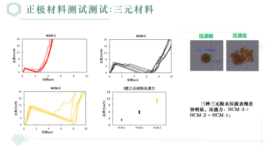 粉末微納力學性能測試儀:用于測試鋰離子電池相關粉體單顆粒的力學性能。設備采用倒置光學顯微鏡,最大放大倍數1200倍,最小支持4um的粉體顆粒檢測,可實時輸出應力應變曲線、壓潰點、抗壓強度等數據。