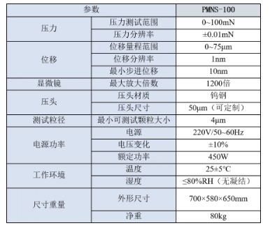 設備由高精度力學測試系統、高精度位移測試系統、高倍率光學顯微鏡與自動化控制平臺組成。工作時可先在高倍率的光學顯微鏡下實現對顆粒大小和形貌的初步分析,然后采用高精度的控制系統對粉末進行加壓測試。測試過程中可實現對壓力和位移的實時記錄,輸出壓力-位移曲線,自動尋找壓潰點計算出抗壓強度。