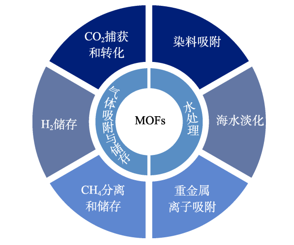 隨著全球?qū)η鍧嵞茉春铜h(huán)保需求的增長,開發(fā)高效的氣體儲存、捕獲和分離技術(shù)變得尤為重要。與傳統(tǒng)多孔材料(如多孔碳、沸石)相比,MOF材料具有結(jié)構(gòu)可調(diào)、超高比表面積和孔隙度等優(yōu)點。這些特性使MOF材料在氣體存儲和分離領(lǐng)域具有顯著優(yōu)勢,例如在關(guān)鍵能源氣體(如H2、CH4、C2H2、NH3)的儲存、溫室氣體及有毒氣體(包括CO2、CS2、NOx、CO)的捕獲,以及工業(yè)化學品(如乙烯和丙烯)等高效吸附與分離等方面。