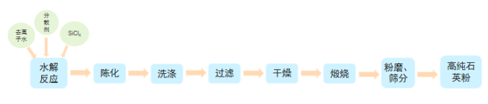 利用四氯化硅與水接觸發生水解、縮聚反應,將反應產物經過洗滌、過濾、干燥、煅燒、篩選等工藝,制備出合成石英砂。