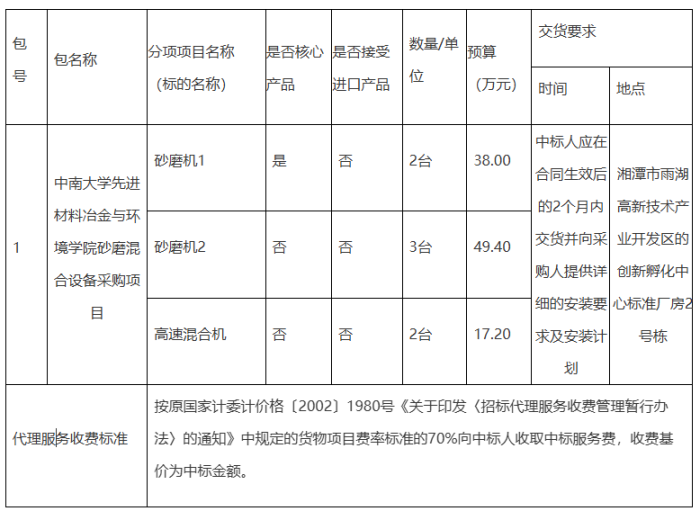項目名稱:中南大學先進材料冶金與環境學院砂磨混合設備采購項目