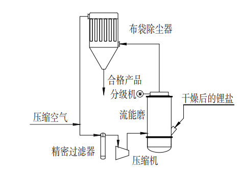 電池級鋰鹽生產的閉式氣流粉碎系統