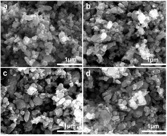 不同pH條件下制備的LiFe0.4Mn0.6PO4@C材料粉碎后SEM圖