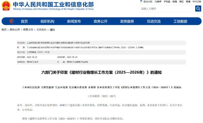 《建材行業(yè)穩(wěn)增長工作方案(2025—2026年)》