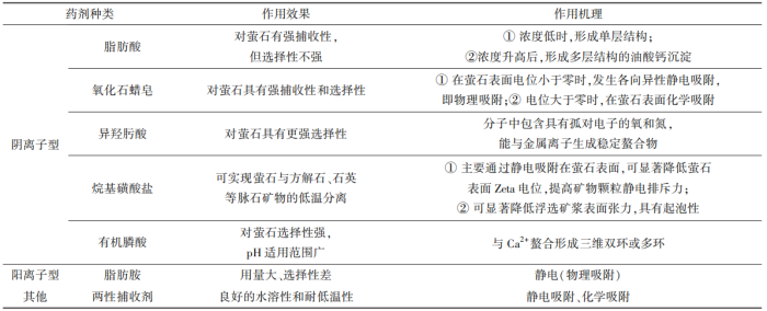 根據極性基團的種類,螢石浮選所用的捕收劑可分為三大類:陰離子型、陽離子型和其他捕收劑。
