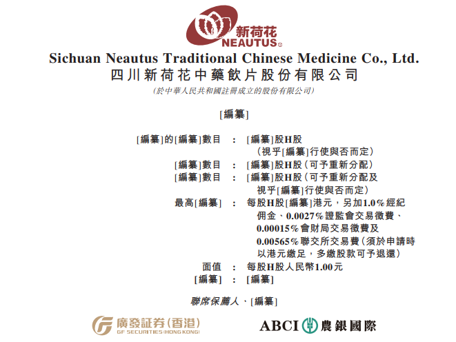 3、四川新荷花中藥,遞交IPO招股書,擬赴香港上市,廣發證券、農銀國際聯席保薦