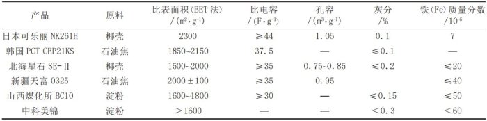 國內外超級電容炭性能對比