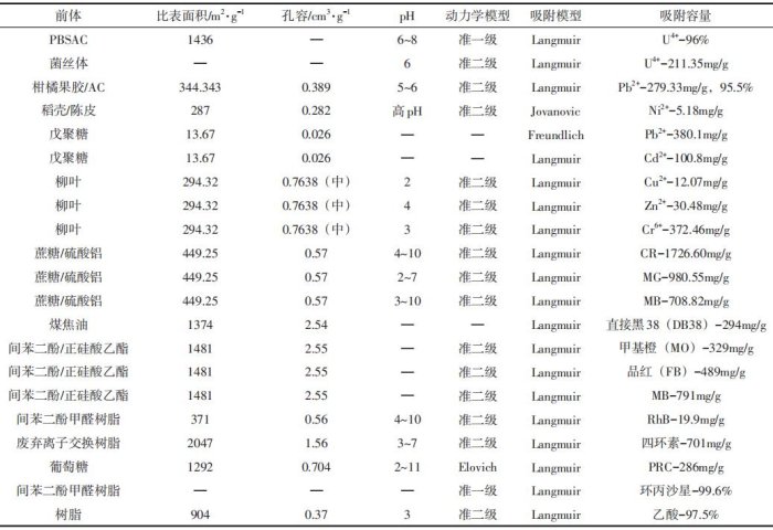 不同前體制備SAC的物理性質及液相吸附效果