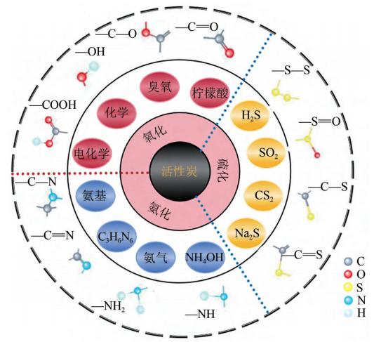 用不同官能團對活性炭進行表面改性技術示意圖