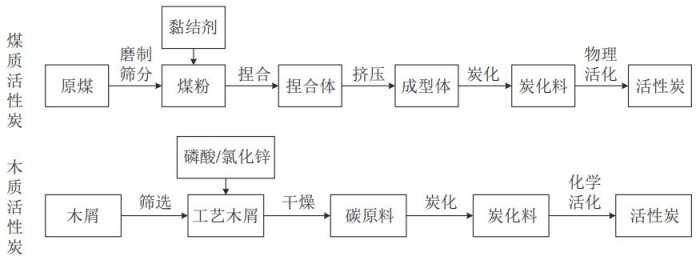 煤質活性炭和木質活性炭的典型制備工藝