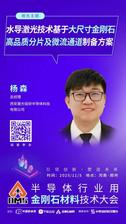 2025年11月5日,中國(guó)粉體網(wǎng)將在河南•鄭州舉辦“2025半導(dǎo)體行業(yè)用金剛石材料技術(shù)大會(huì)”。屆時(shí),來(lái)自西安晟光硅研半導(dǎo)體科技有限公司總經(jīng)理?xiàng)钌?/strong>將帶來(lái)《水導(dǎo)激光技術(shù)基于大尺寸金剛石高品質(zhì)分片及微流通道制備方案》的報(bào)告。