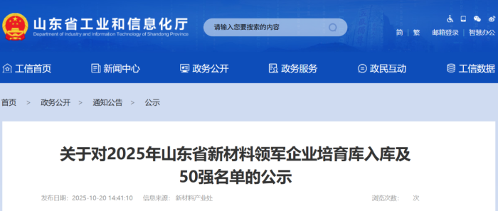 中國粉體網訊 近日,山東省工業和信息化廳公示了2025年山東省新材料領軍企業培育庫入庫企業名單及50強企業名單。其中,6家先進陶瓷制造企業入選。