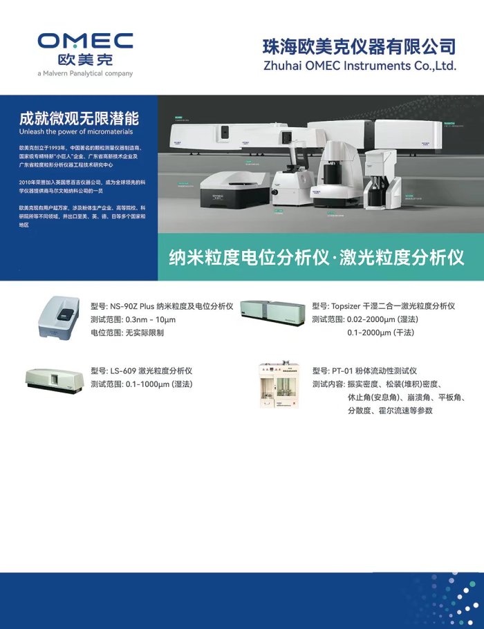 珠海歐美克儀器有限公司為擁有眾多知名跨國企業的英國思百吉集團成員,同時也是科學儀器制造商馬爾文帕納科公司的一員。歐美克結合集團先進的研發管理理念與強大的技術支持,為客戶提供優質的粒度檢測產品與服務,主要包括激光粒度分析儀、納米粒度電位分析儀、電阻法顆粒計數器、顆粒圖像分析處理儀、動態圖像儀和粉體特性測試儀等六大系列產品。