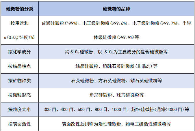 根據制作工藝分為:結晶硅微粉、熔融硅微粉、活性硅微粉、方石英硅微粉、復合硅微粉等。