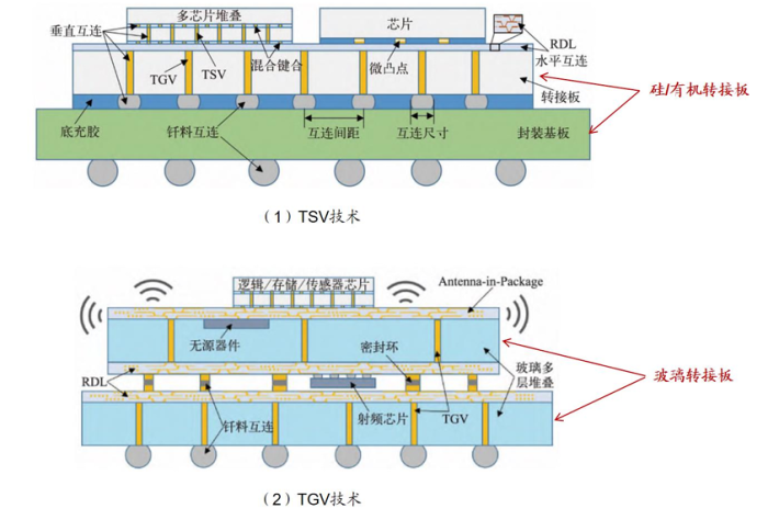 TSV與TGV技術對比 來源:《芯片三維互連技術及異質(zhì)集成研究進展》(鐘毅等)