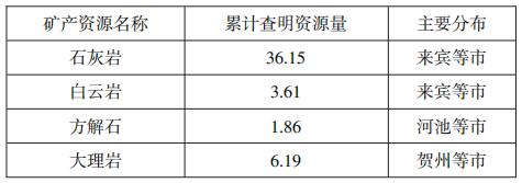 廣西主要碳酸鈣礦產資源儲量情況及分布 單位:億噸