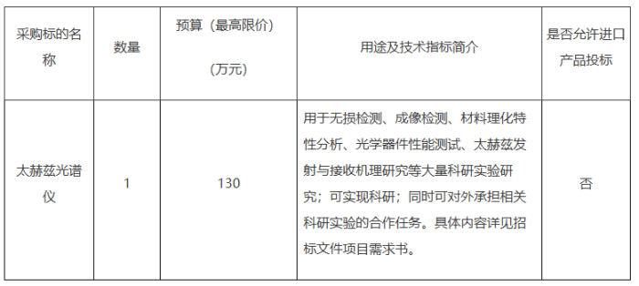 130萬(wàn)!南開(kāi)大學(xué)公開(kāi)招標(biāo):太赫茲光譜儀