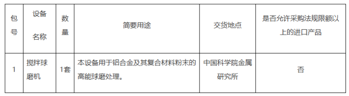 項(xiàng)目名稱:中國科學(xué)院金屬研究所攪拌球磨機(jī)采購項(xiàng)目