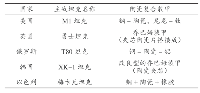 主戰(zhàn)坦克配備的陶瓷復(fù)合裝甲