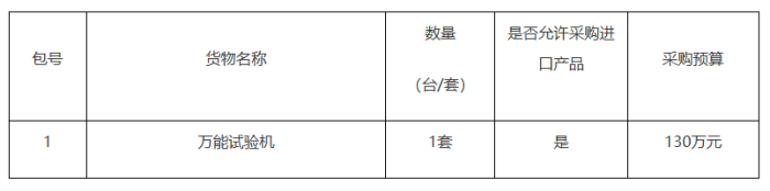 項(xiàng)目名稱:中國科學(xué)院上海有機(jī)化學(xué)研究所萬能試驗(yàn)機(jī)采購項(xiàng)目