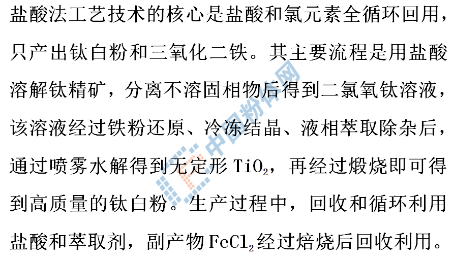 面對硫酸法與氯化法生產技術的不完美及各自存在的優缺點,科學家們根據化學工程的“三傳一反”工藝過程創新開發了反應溫度相對較低、不以“固液”和“氣液”分離為手段、而采用“液液”分離溶劑萃取的鹽酸法。