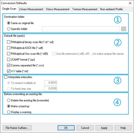 如上設(shè)置后,當(dāng)Data Collector軟件執(zhí)行絕對掃描程序來測量樣品,在測試完成時,除了生成一個XRDML格式的數(shù)據(jù)文件外,系統(tǒng)會自動根據(jù)Data Viewer菜單Defaults - Conversion...里的設(shè)置將其轉(zhuǎn)換成需要的格式。